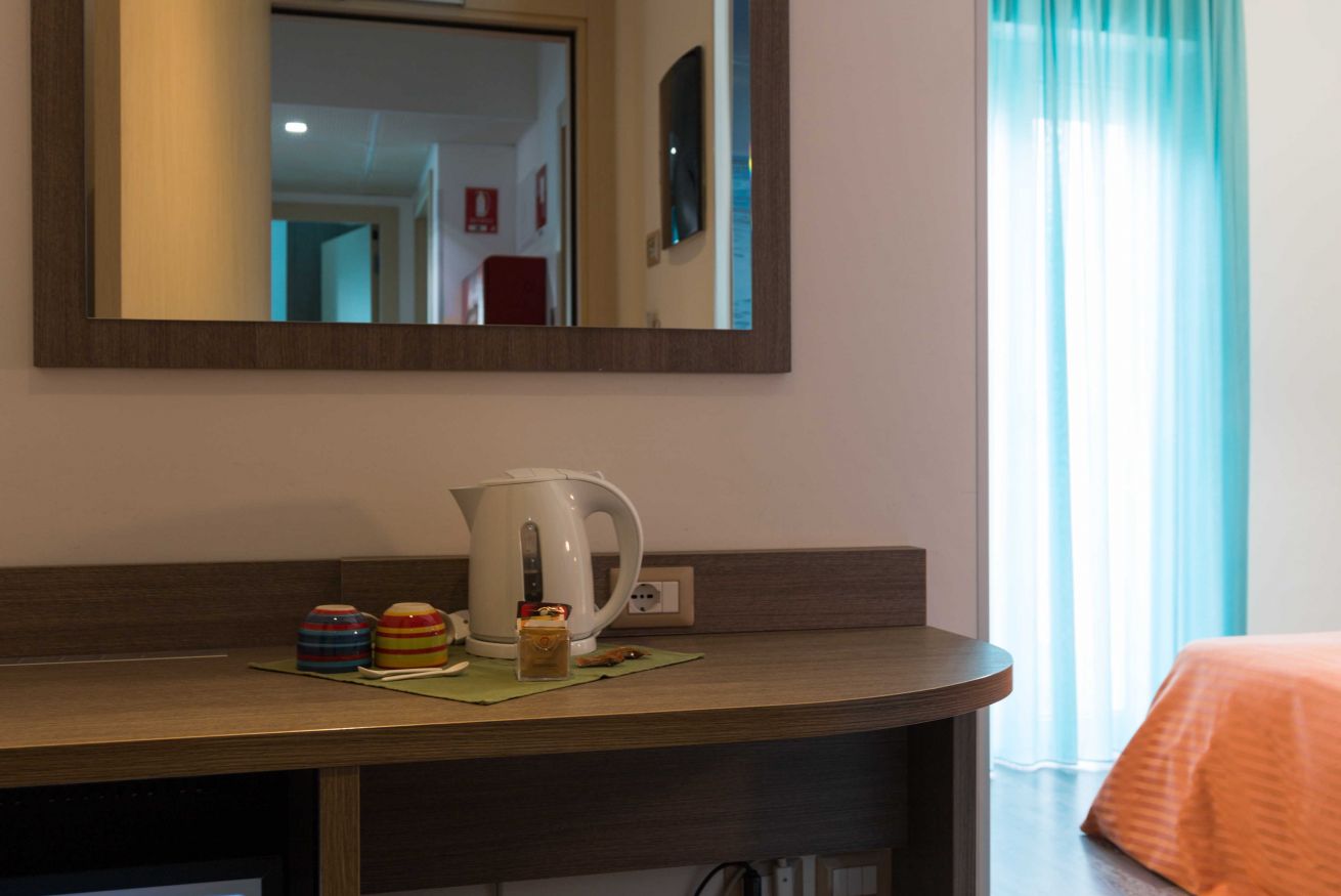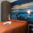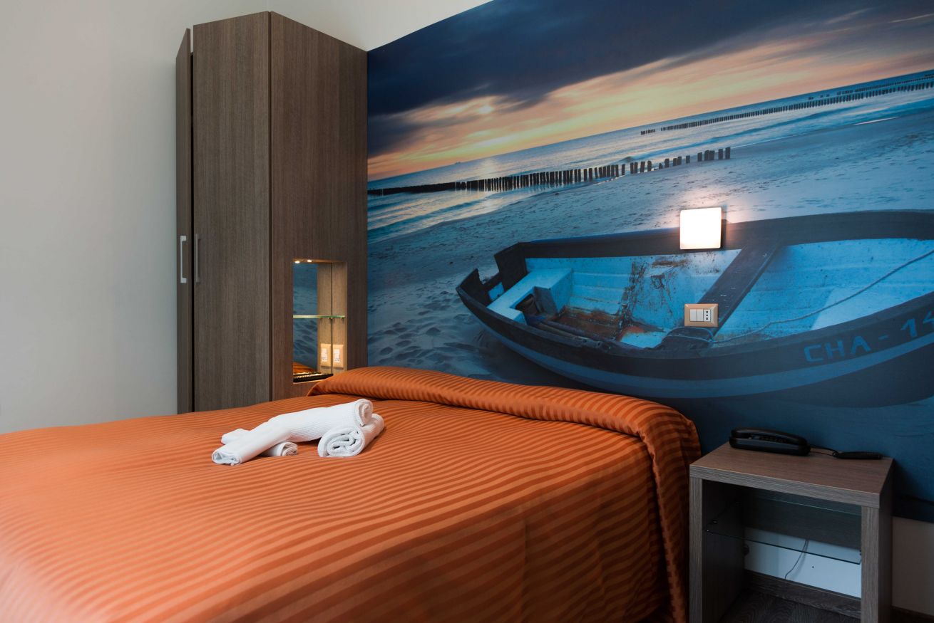 Camere Matrimoniali di circa mq 17. Alcune con balcone o giardinetto pensile attrezzato con poltroncine, altre con balconcino alla francese, altre ancora solo con finestra. Le camere sono dotate di infissi e tapparelle insonorizzati, tuttavia quelle fronte mare sono situate nelle immediate vicinanze del percorso ferroviario.