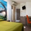 Mansarda di mq 17 senza balcone con finestra a soffitto Velux completa di tapparella, apertura-chiusura entrambe regolabili con telecomando. Letto matrimoniale o due letti singoli (se prenotata anticipatamente). Vista stelle. Bagno con finestra.